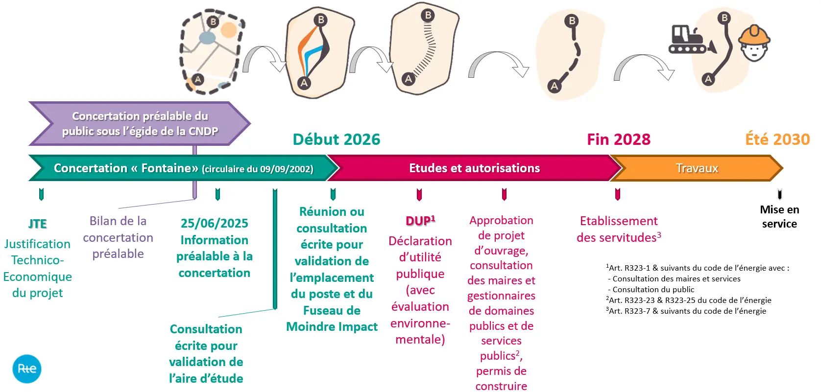 VERSO ENERGY et RTE prévoient un dépôt du DDAE à l’horizon du premier semestre 2026. Une fois celui-ci réputé complet par l’administration, une phase de consultation du public s’ouvrira.